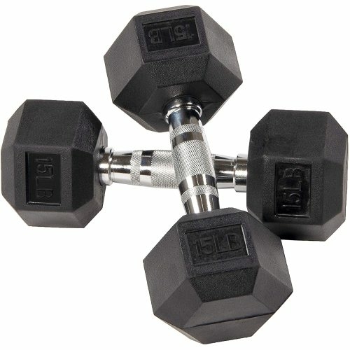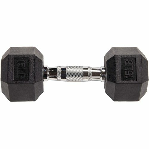 Hexagon shaped dumbbell heads are designed to prevent rolling and provide easier storage.