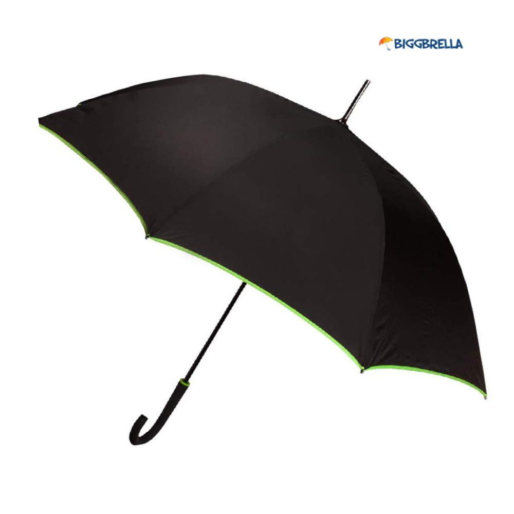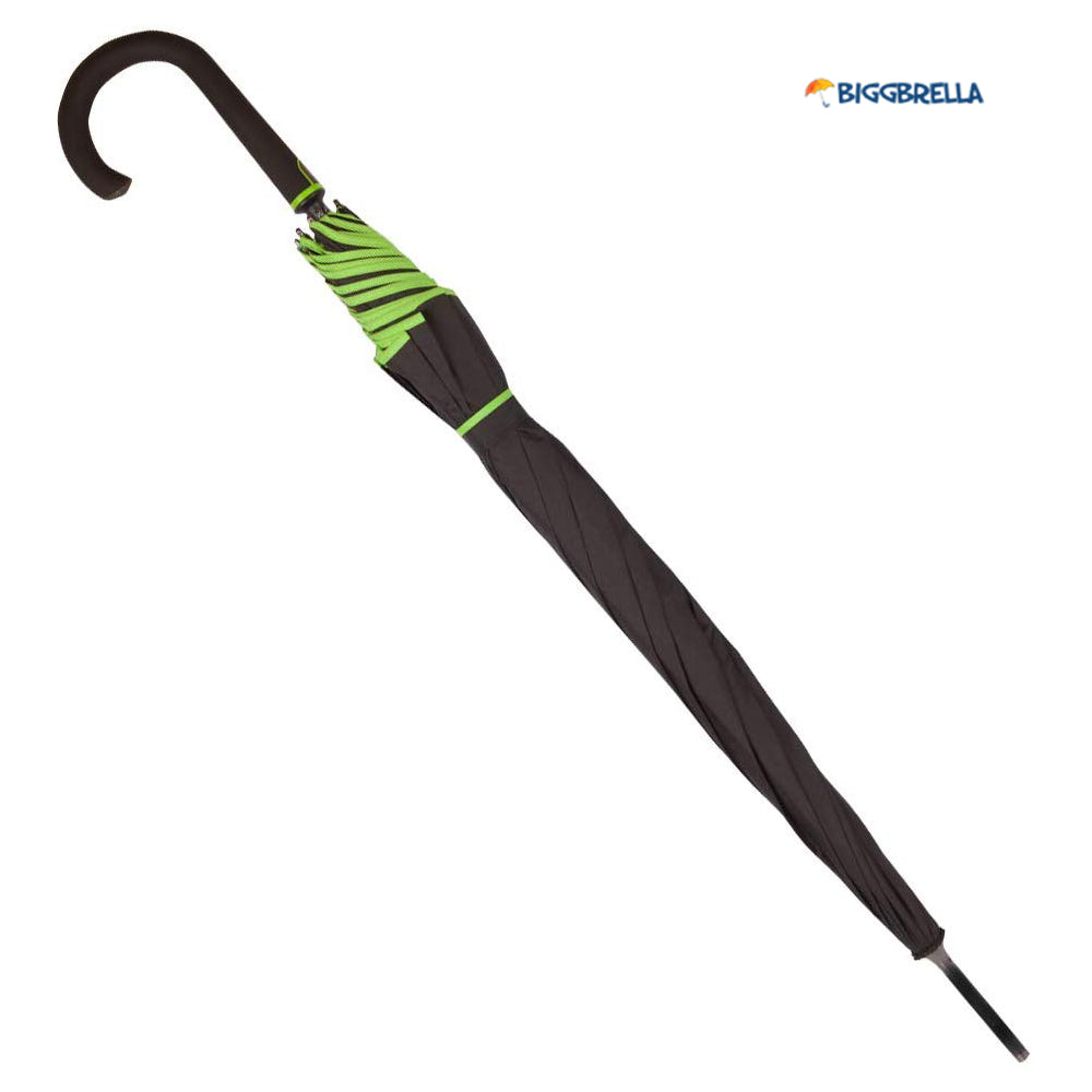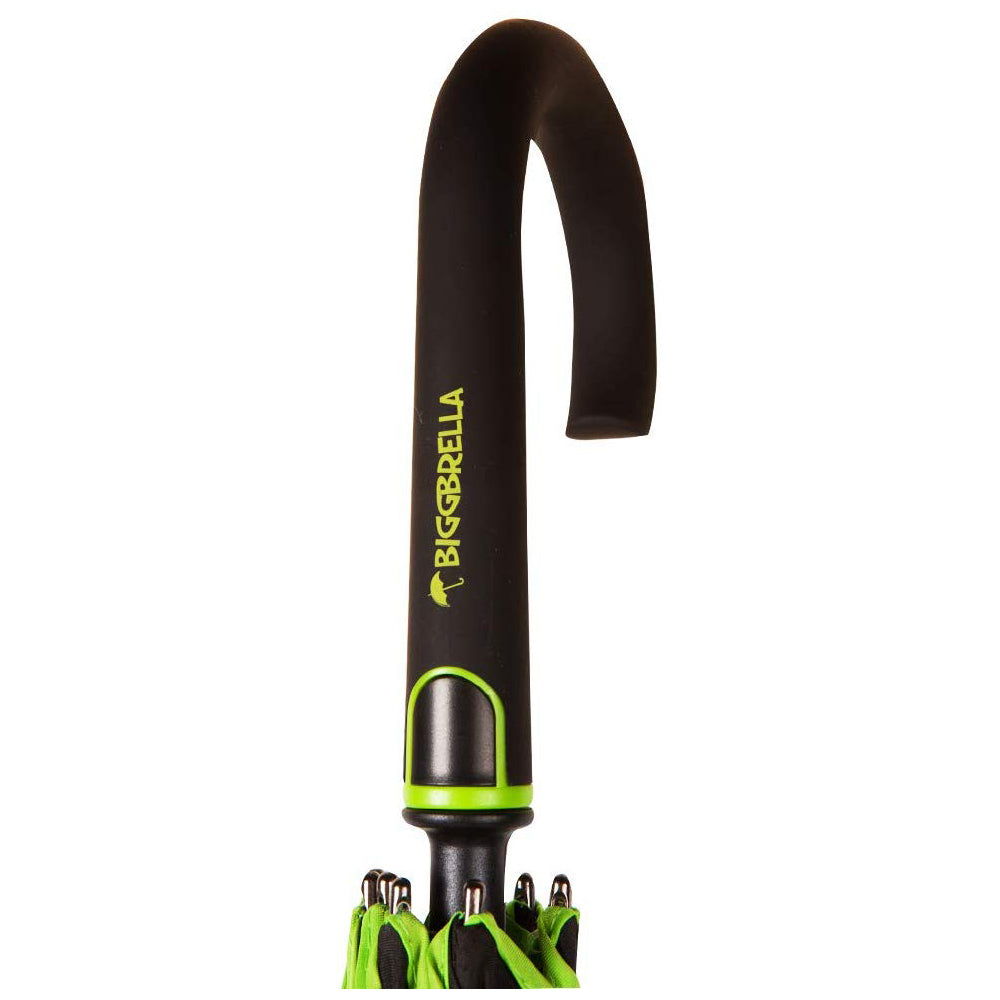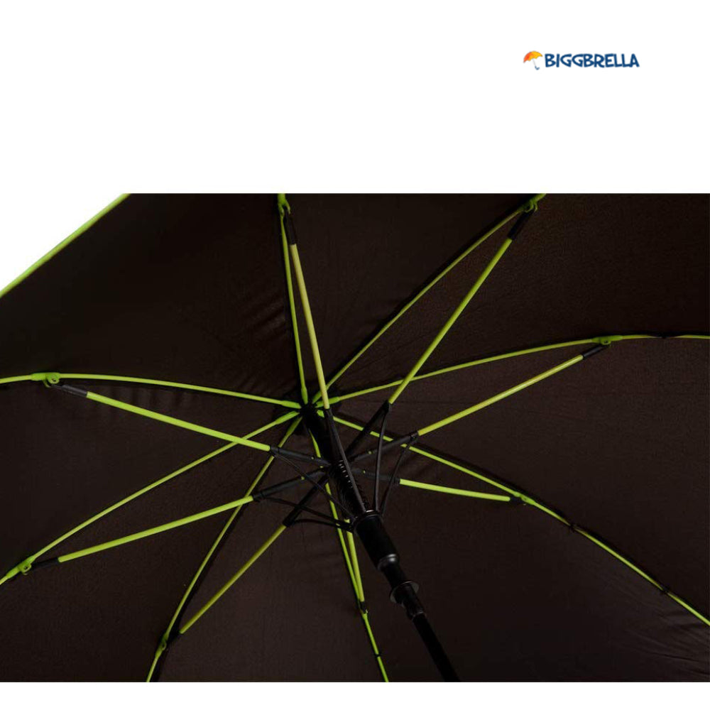 Biggbrella Schwarz/Grün Regenschirm mit ergonomischem Griff und 23 Zoll Durchmesser, ideal für Regen und Sonnenschutz.