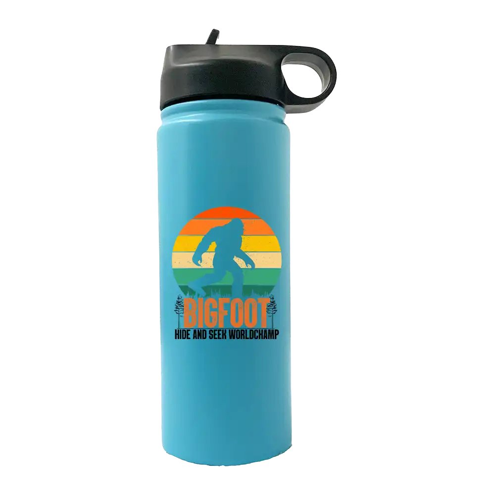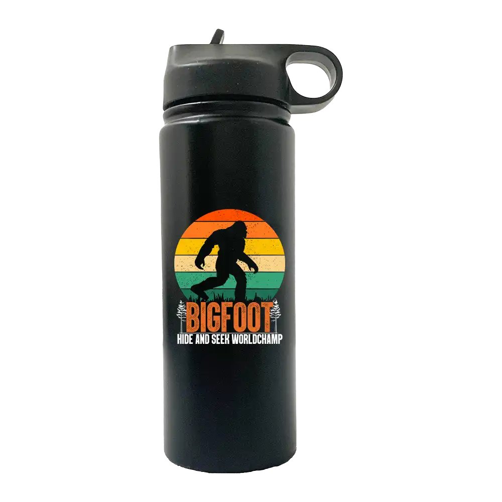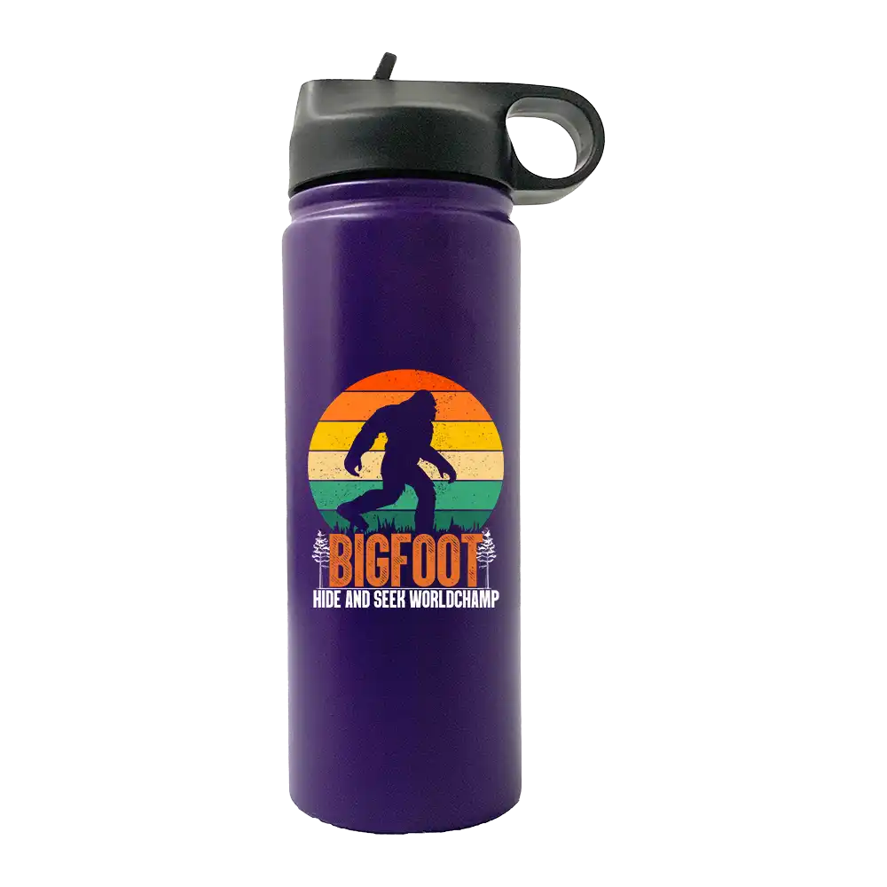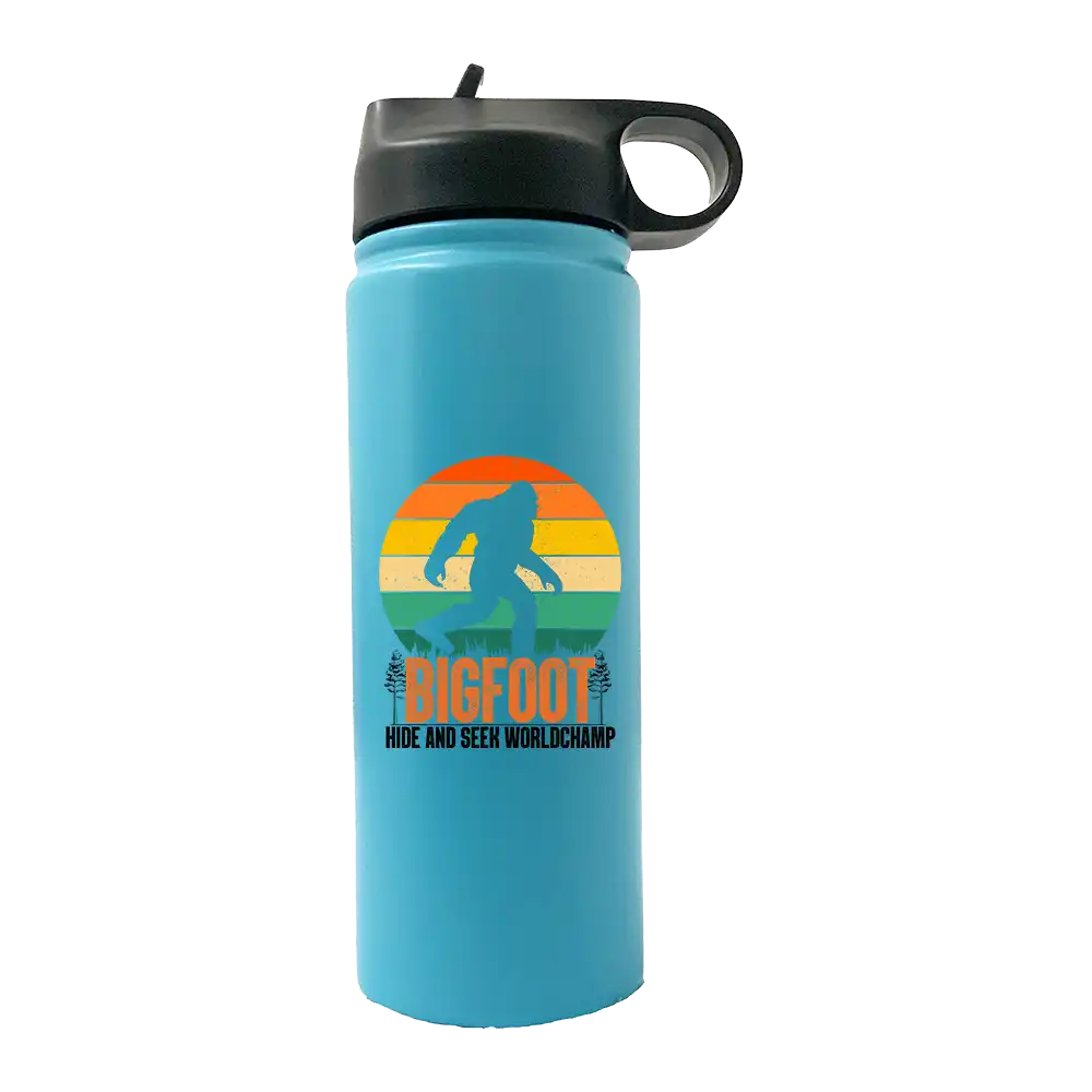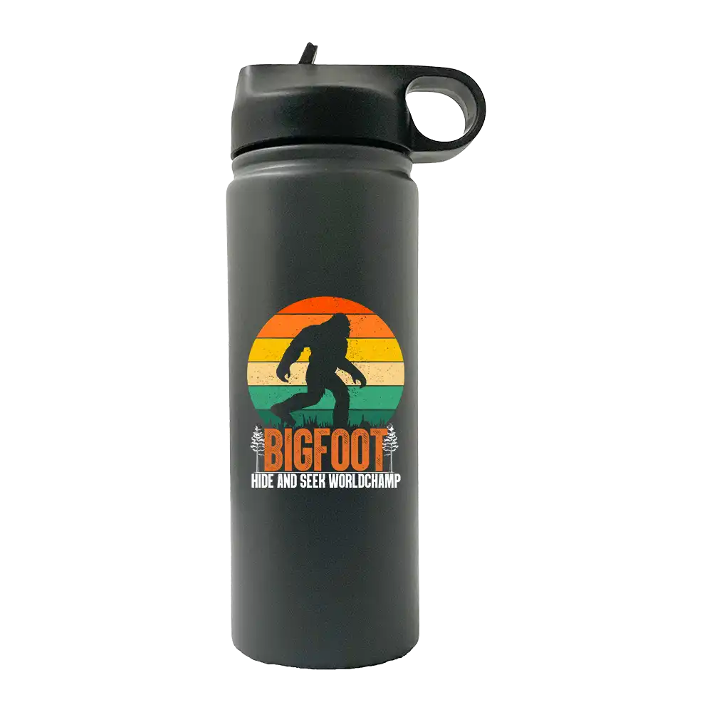 One of the standout features of the Bigfoot Hide And Seek Sport Bottle is its UV-printed design. Unlike traditional decals that can fade or peel over time, our UV-printed designs are built to last, ensuring your bottle looks great even after extensive use. Say goodbye to dingy decals and hello to a stylish, eye-catching bottle that will turn heads wherever you go.