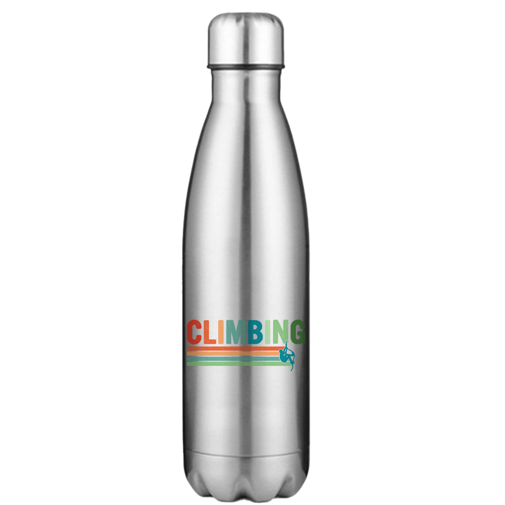 Climbing 17oz stainless steel water bottle with double-walled vacuum insulation and leakproof cap, featuring a stylish UV printed design.