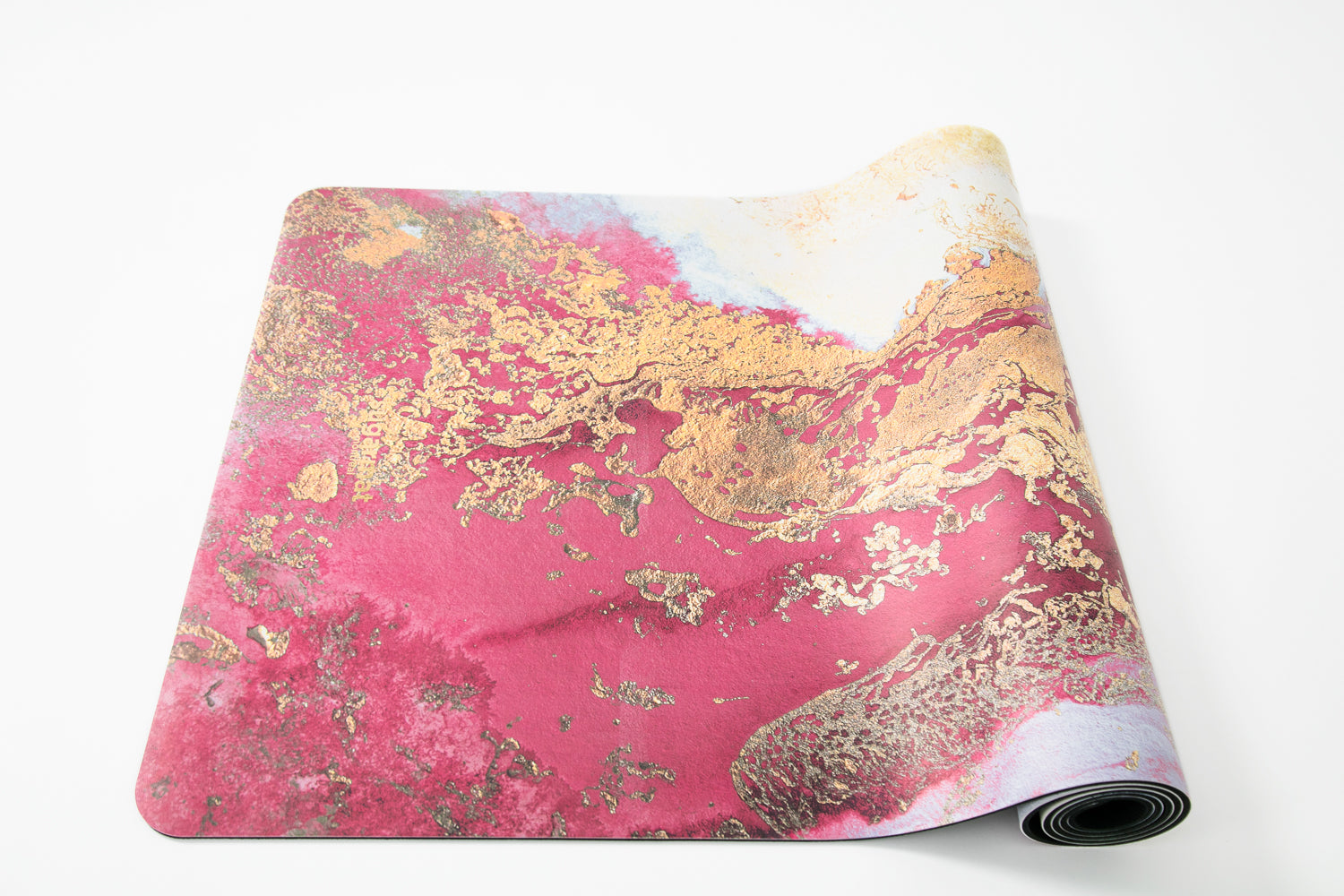Dream Catcher Red LUX PU Yoga Mat featuring abstract art by Julia Contacessi, available in 3MM and 5MM thickness.