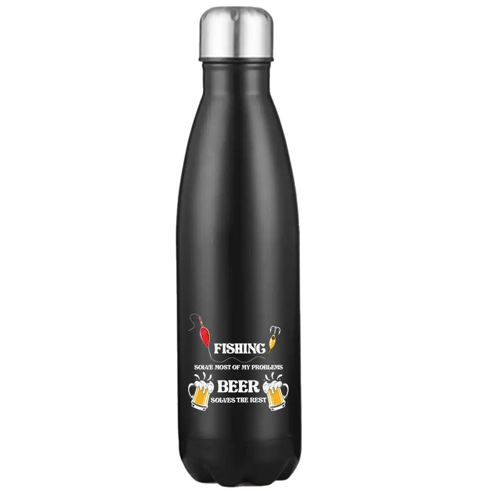 Forget about flimsy plastic bottles that wear out quickly. The Fishing Solves All My Problem water bottle is made from high-quality stainless steel, making it both durable and long-lasting. Its robust construction means it can withstand the rigors of outdoor adventures, workouts, and everyday use. Plus, the UV printed designs eliminate the need for decals, ensuring that your bottle looks great and stays vibrant over time.