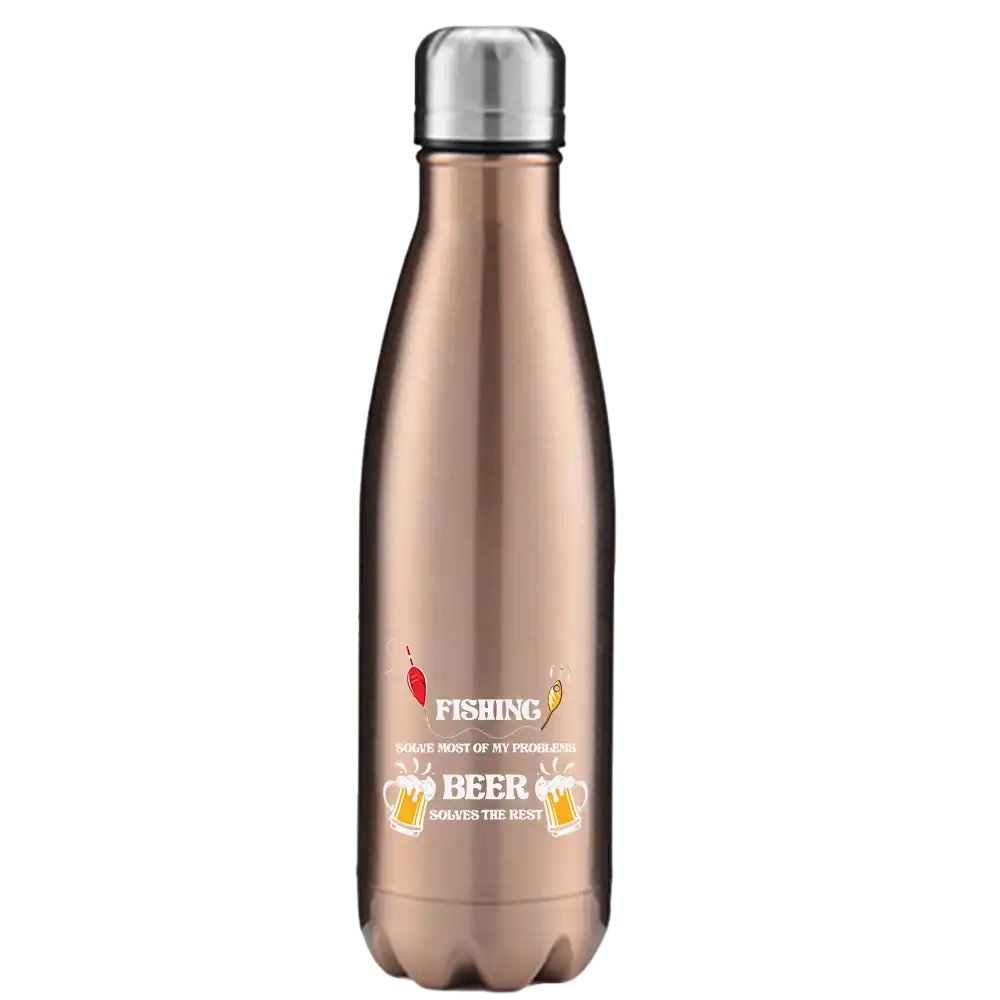 This versatile water bottle is designed for a variety of activities. Whether you're engaging in outdoor sports, traveling, or just need a reliable hydration solution for your daily routine, the Fishing Solves All My Problem water bottle is up to the task. Its lightweight and portable design make it easy to carry, ensuring you can stay hydrated wherever life takes you.