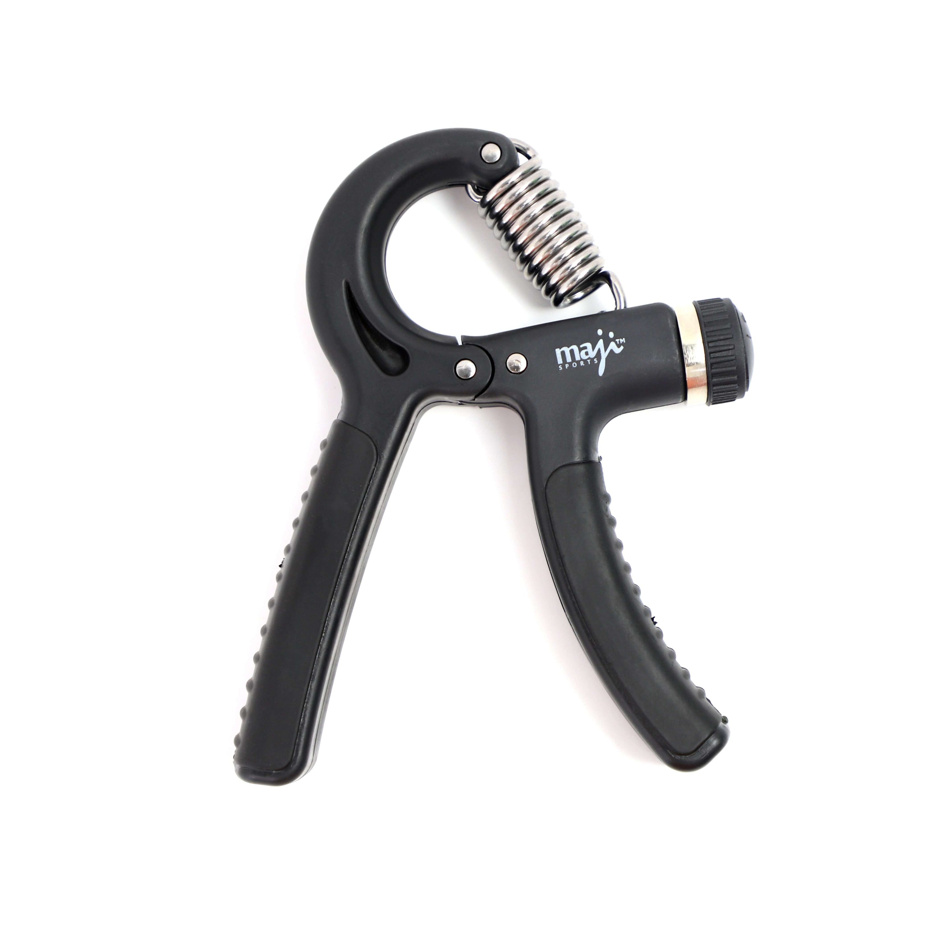 Adjustable hand grip designed for enhancing forearm muscularity and hand endurance, featuring a compact design for portability.