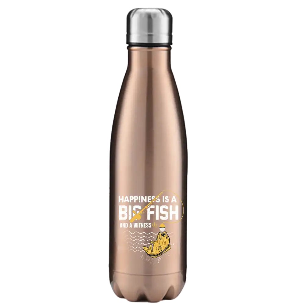In summary, the Happiness Is A Big Fish 17oz Stainless Water Bottle is more than just a hydration tool; it's a stylish, durable, and eco-friendly accessory that fits seamlessly into your active lifestyle. With its ability to keep drinks at the perfect temperature, leakproof design, and eye-catching aesthetics, this water bottle is a must-have for anyone looking to stay hydrated in style.