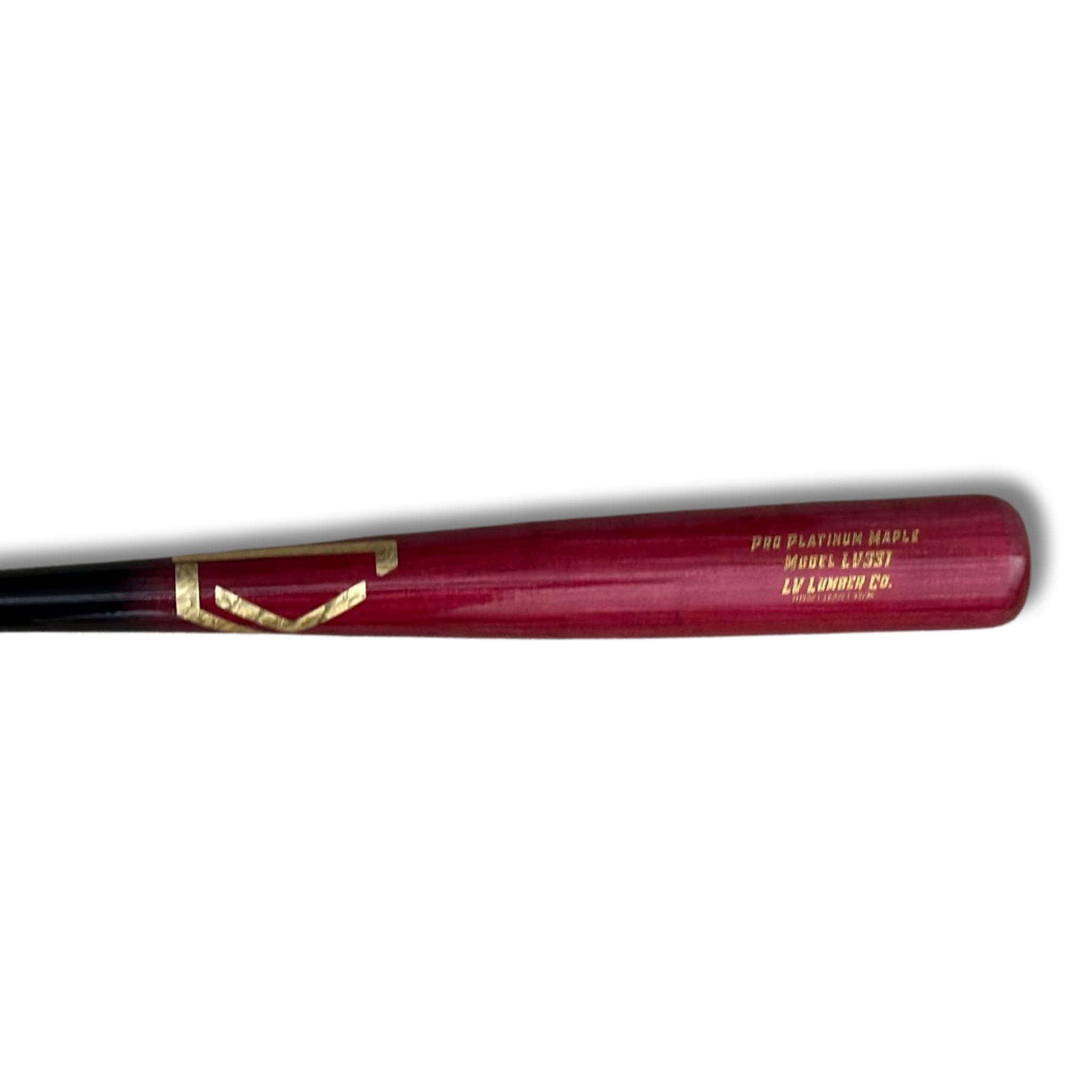 LV331 baseball bat made of maple wood with a large tapered knob and medium barrel size, designed for gap-to-gap hitters.