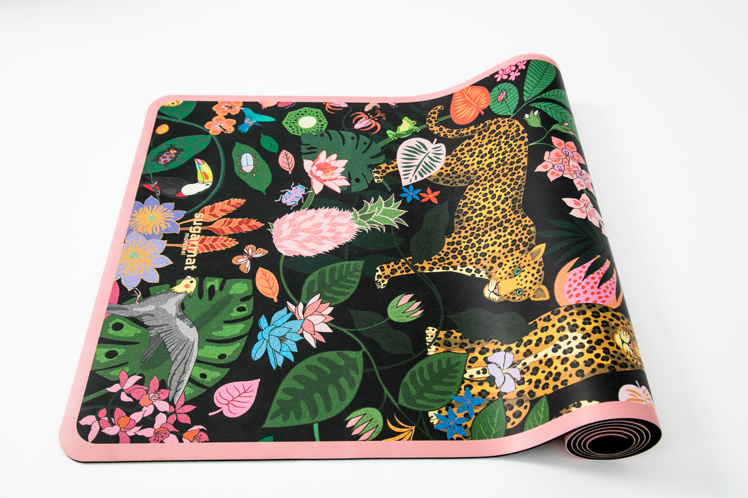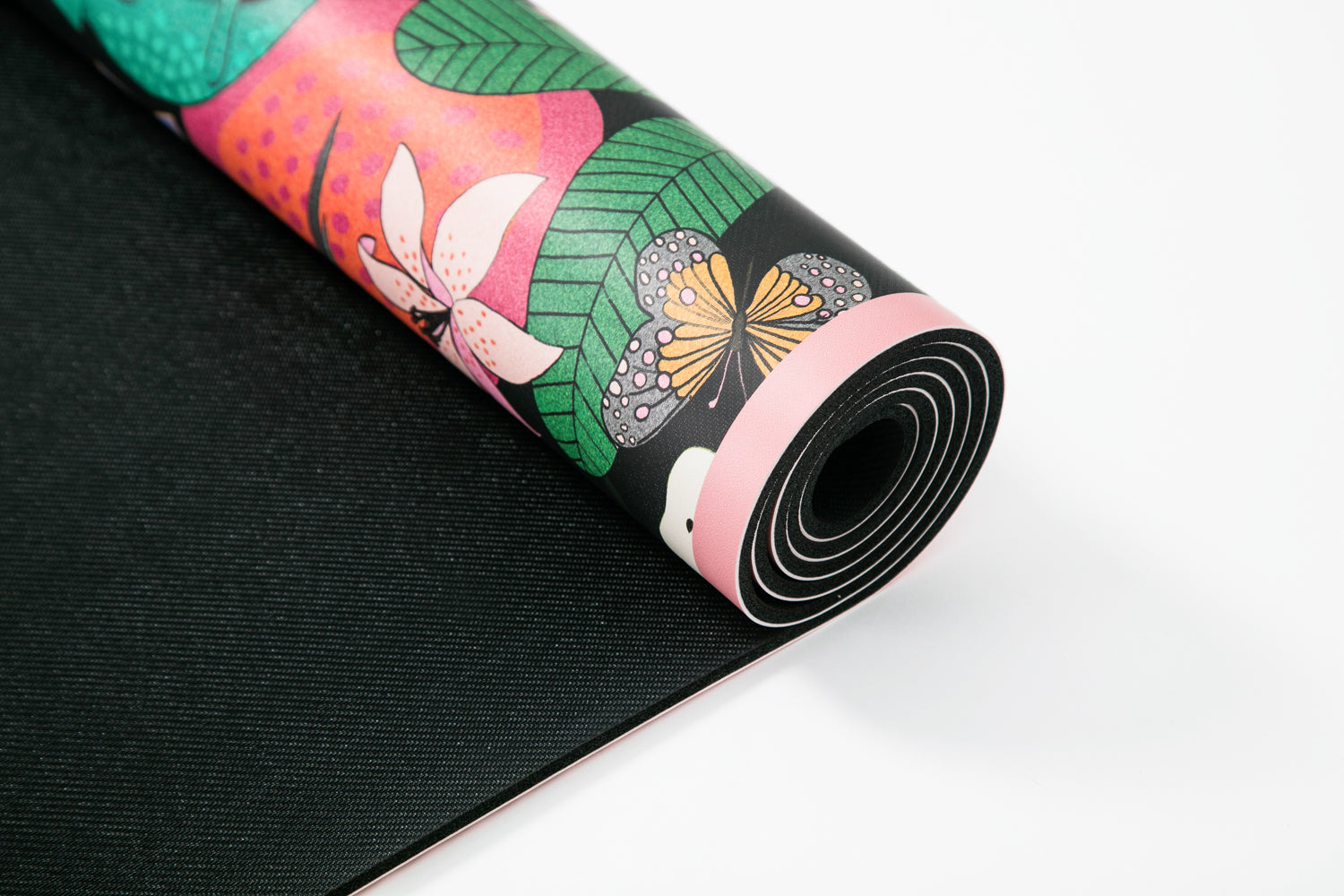 The Spotty Paradise - LUX PU Yoga Mat (3MM) is the perfect companion for your yoga practice, combining style, comfort, and functionality. Designed with a unique and vibrant flora and fauna print, this mat not only enhances your workout experience but also makes a bold statement. Illustrated by the talented Karen Mabon, this mat is a feast for the eyes and a joy to use. Whether you're a beginner or an experienced yogi, this mat is designed to meet your needs and elevate your practice.