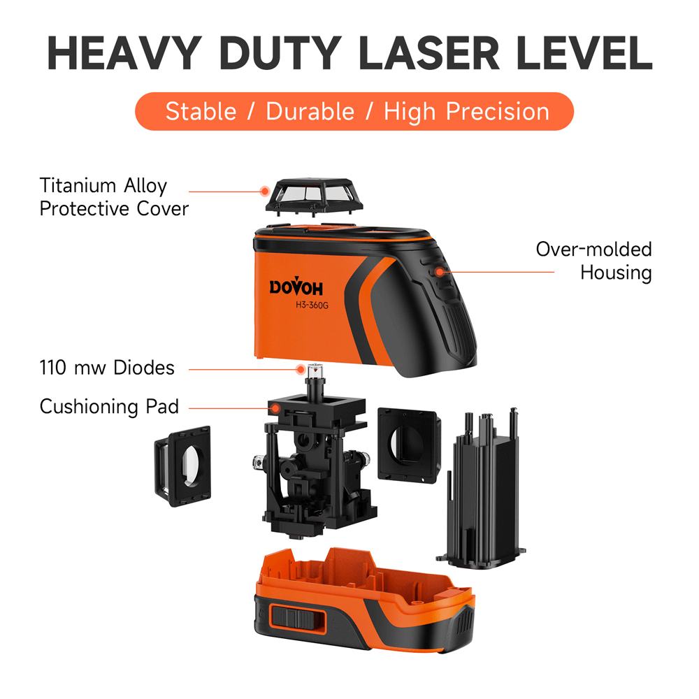The Dovoh H3-360G is built to withstand the rigors of outdoor use. Its durable construction and weather-resistant design ensure that it can handle tough job site conditions. Whether you are working in rain, dust, or extreme temperatures, this laser level will continue to perform reliably.