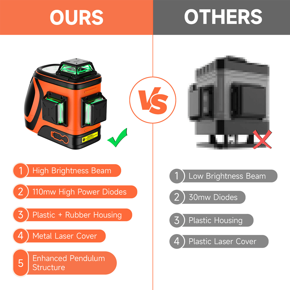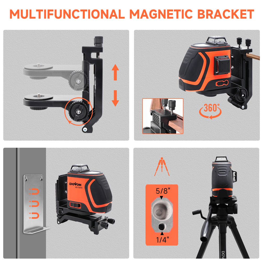 One of the standout features of the Dovoh H3-360G is its ultra-bright laser technology. This ensures that the laser lines are visible even in bright sunlight, allowing you to work outdoors without any hindrance. Whether you are marking walls, aligning tiles, or setting up furniture, the bright laser lines will guide you with clarity.