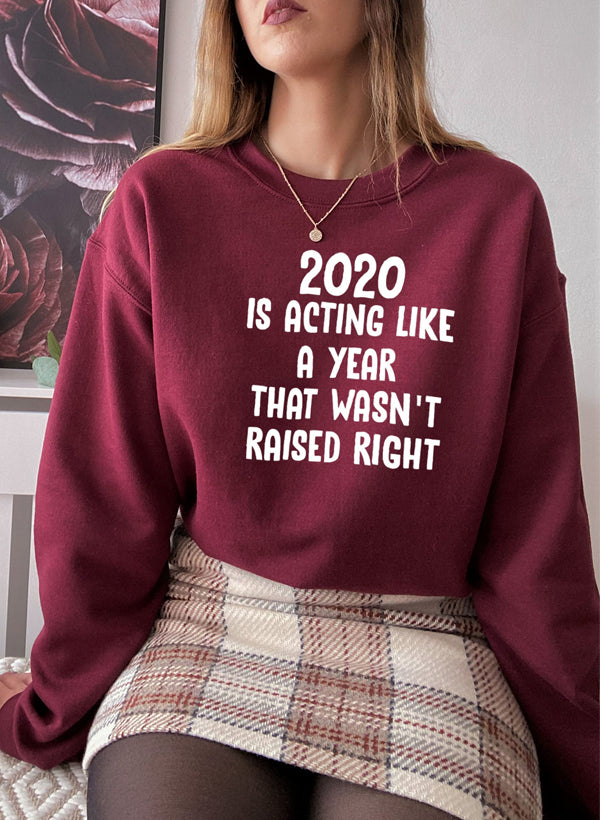 The versatility of the 2020 Is Acting Like A Year That Wasn't Raised Rig Sweat Shirt makes it a must-have in your wardrobe. Pair it with jeans for a casual look, or wear it over leggings for a cozy day at home. Its stylish design means you can easily dress it up or down, making it suitable for various occasions.