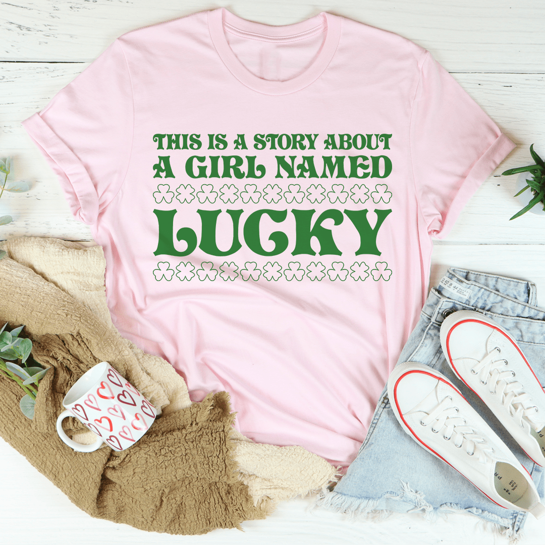 The A Girl Named Lucky T-Shirt is incredibly versatile. It can be paired with jeans, shorts, or even layered under a jacket for a chic look. Dress it up with accessories or keep it casual; the styling options are endless. This t-shirt is perfect for any occasion, whether you're heading to a casual outing or just hanging out at home.