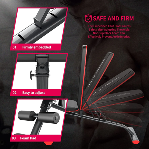 [New Design & Safety]The frame of the Murtisol adjustable weight bench is made of commercial-grade 2.0 steel pipe, and the support frame under the seat adopts an integrated large-diameter thickened wall tube and a triangular support structure. The buckle is firm to ensure stability and It is safe, and the weight capacity is 660LBS.