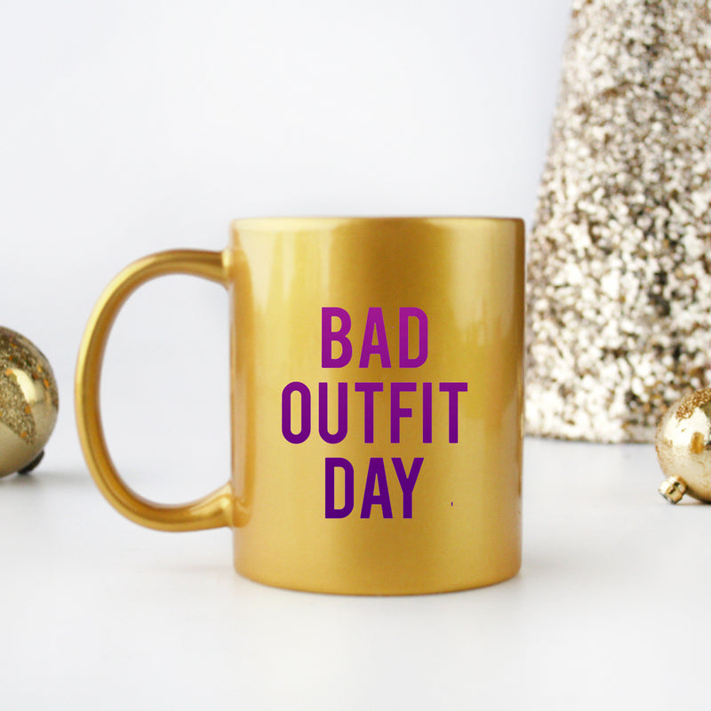 Crafted from durable ceramic, the Bad Outfit Day Mug is built to last. The gold metallic coating not only enhances its aesthetic appeal but also provides a protective layer that helps maintain its beauty over time. However, it is important to note that this mug is not dishwasher or microwave safe. To ensure its longevity, hand washing is recommended.