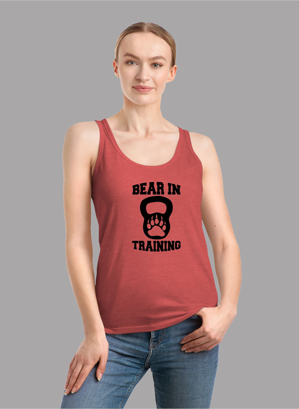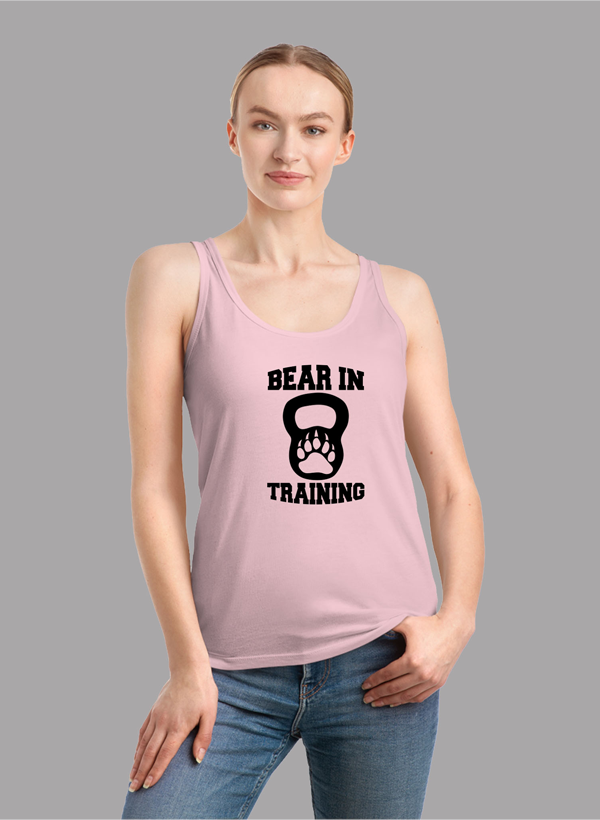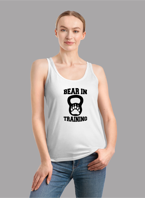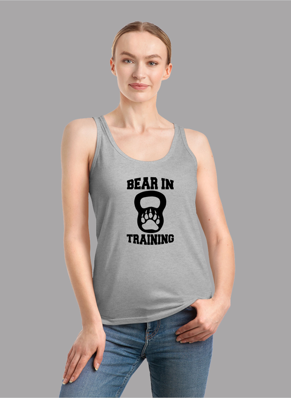 The racer back style of the BEAR IN TRAINING Tank Top allows for a full range of motion, making it ideal for yoga, running, or any fitness routine. The curved back hem adds an extra touch of comfort, allowing you to move freely without any restrictions. Whether you're hitting the gym or lounging at home, this tank top is a versatile addition to your wardrobe.