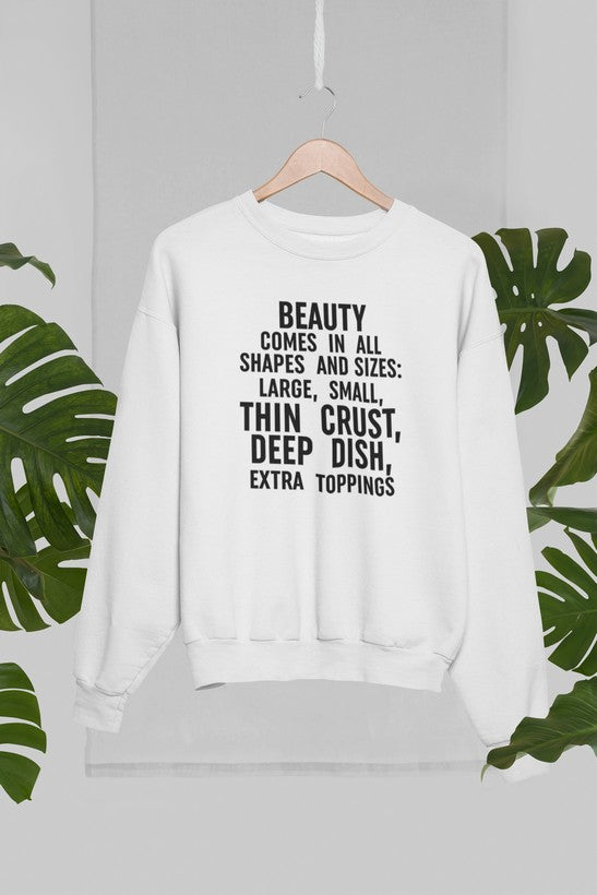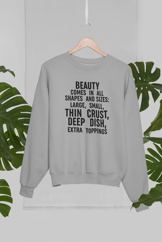 The Beauty Comes in All Shapes Sweat Shirt is incredibly versatile. Pair it with jeans for a casual look, or wear it with joggers for a cozy day at home. You can even dress it up with a skirt and accessories for a fun night out. The possibilities are endless!