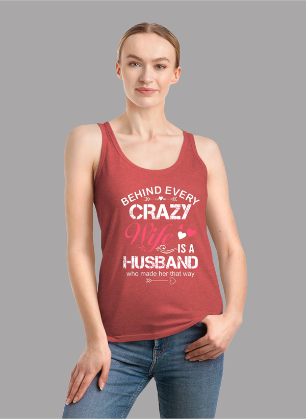 Elevate your activewear collection with the Behind Every Crazy Wife Tank Top. Its stylish design, high-performance fabric, and commitment to responsible production make it a perfect choice for any active woman.
