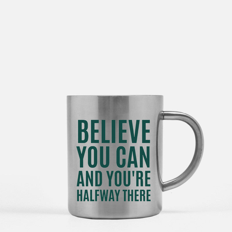 The Believe You Can mug showcases a unique one or two-sided design that makes it stand out in any kitchen or office setting. The combination of gold and silver not only enhances its visual appeal but also makes it a great conversation starter. The motivational quote, “Believe You Can And You’re Halfway There,” serves as a daily reminder to stay focused on your goals and aspirations. This mug is perfect for anyone who appreciates inspirational quotes and wants to incorporate positivity into their daily routine.