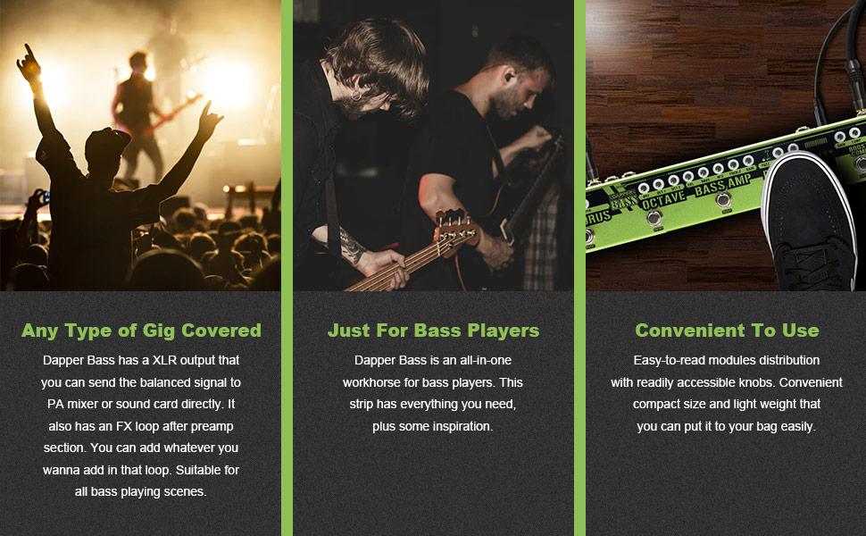 Whether you're playing rock, jazz, funk, or any other genre, the Dapper BASS Multi Effects Pedal is versatile enough to accommodate a wide range of musical styles. Its ability to produce various effects means that you can experiment with your sound and find the perfect tone for your music. This versatility makes it a valuable addition to any bassist's setup.