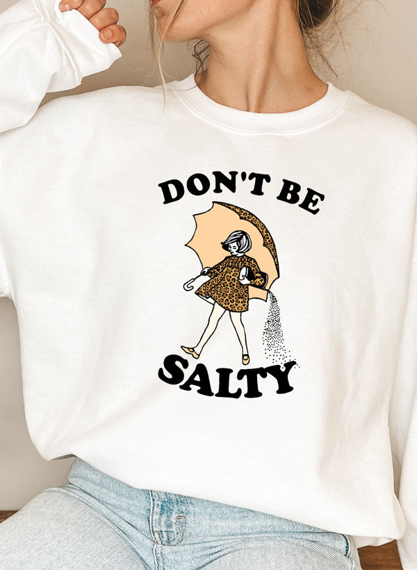 Introducing the Dont Be Salty Sweat Shirt, a stylish and comfortable addition to your wardrobe that allows you to express your unique personality. Designed by hundreds of top artists, this sweatshirt is not just a piece of clothing; it's a statement. Whether you're lounging at home or out with friends, this sweatshirt will keep you looking cool and feeling cozy.