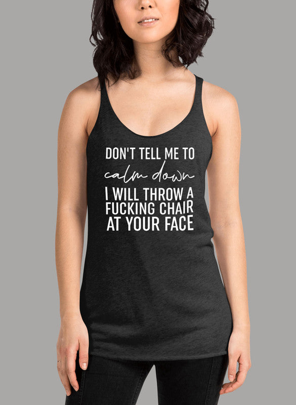 Elevate your wardrobe with the Dont Tell Me To Calm Down White Women Tank Top, a versatile piece that combines comfort, style, and responsible production. Whether you're hitting the gym, running errands, or just hanging out with friends, this tank top is sure to become a staple in your collection.