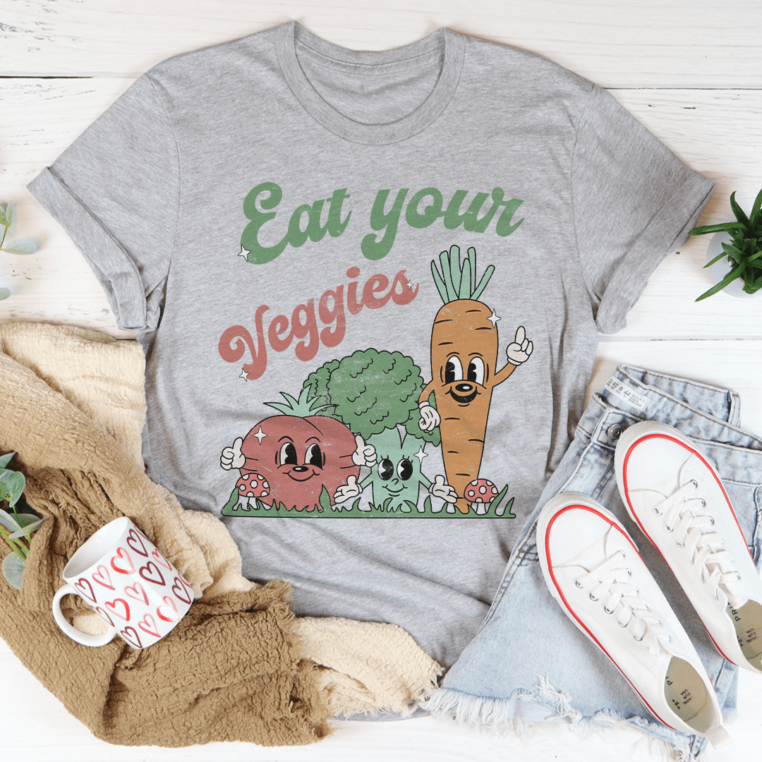 The Eat Your Veggies T-Shirt is crafted with care, featuring double stitching on the neckline and sleeves. This added durability means that you can wear it for any occasion, whether you're lounging at home, running errands, or meeting friends for a casual outing. The true-to-size fit ensures that you will feel comfortable and confident in your look.