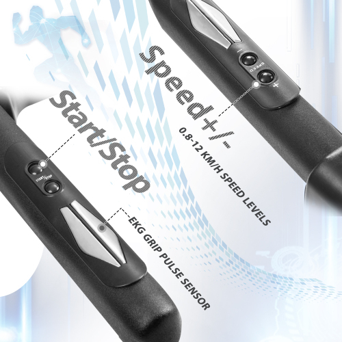【0.8-12 KM/H Speed levels & 12 Built-in Workout Programs】With the quick touch of a button or use the easy-access handlebar controls you can adjust speed from 0.8-12KM/H to manipulate workout intensity and reach your goals with pre-set 12 programs