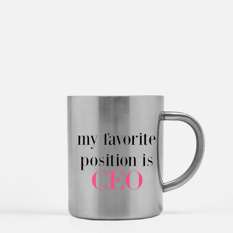 In summary, the Favorite Position Is CEO Gold & Silver Mug is more than just a drinking vessel; it's a statement piece that embodies ambition and elegance. With its high-quality materials, thoughtful design, and perfect size, it is an essential item for anyone who values style and functionality in their daily life.