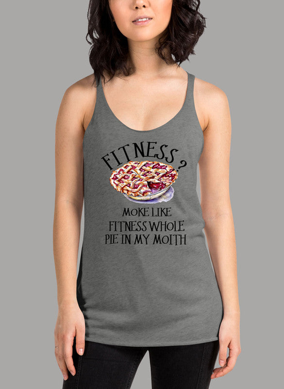 In summary, the Fitness Pie In My Mouth Women Tank Top is a versatile and stylish addition to any active woman's wardrobe. With its high-performance fabric, sun protection, and responsible production, it checks all the boxes for functionality and ethics. Elevate your fitness wardrobe with this must-have tank top!