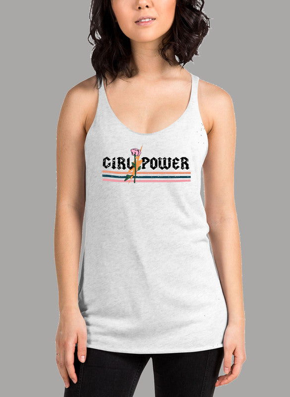 Girl Power Rose Women's Tank Top featuring a racer back style and curved hem, made from quick-drying Neoteric fabric.