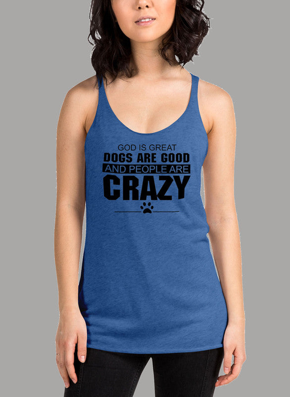 In summary, the God Is Great Dogs Are Good And People Are Crazy Black Women's Tank Top is not just a piece of clothing; it's a statement. It combines humor, style, and functionality, making it a must-have for any dog lover's wardrobe. With its comfortable fit, quick-drying fabric, and ethical production, this tank top is sure to become a favorite in your collection.