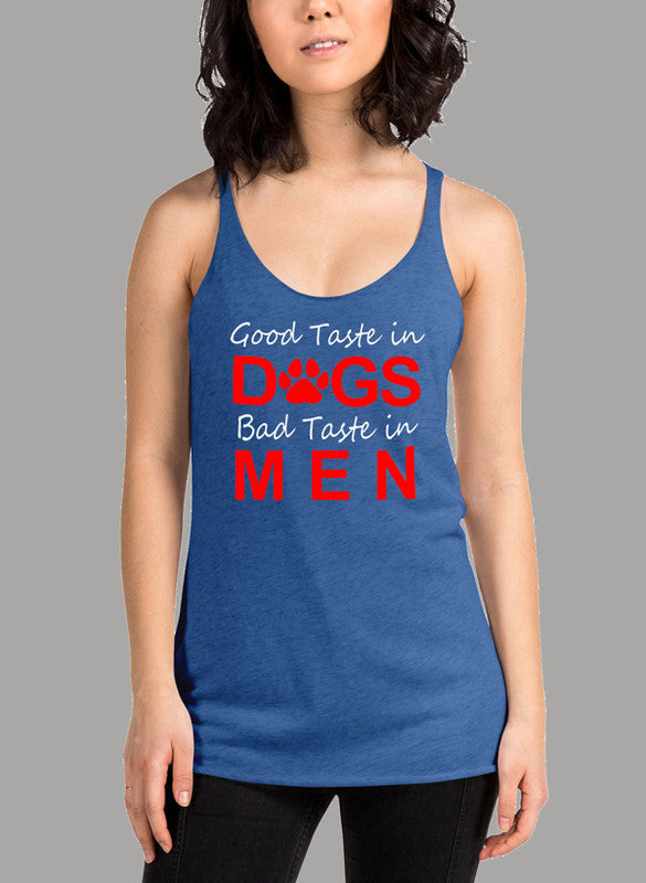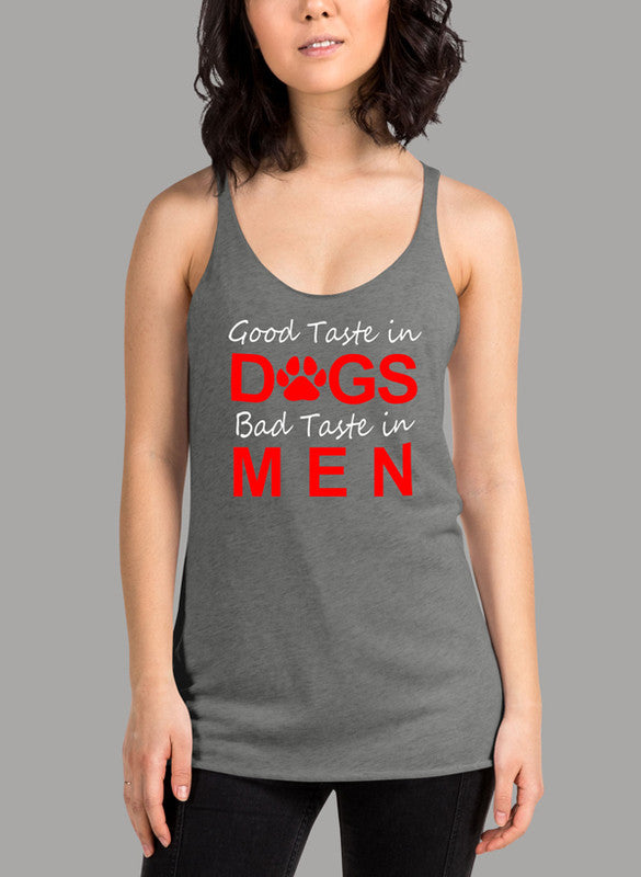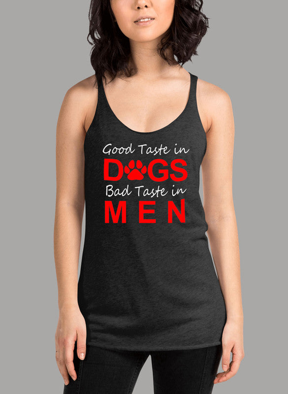 The Good Taste In Dogs Women's Tank Top boasts a girlie fit that flatters your figure. Its racer back style allows for unrestricted movement, making it perfect for workouts or casual outings. The curved back hem adds an extra touch of comfort and style, ensuring you look great while showing off your love for dogs.