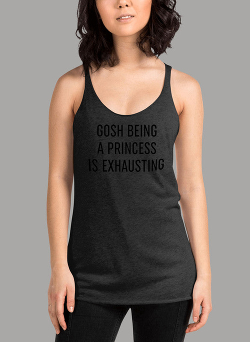 In summary, the Gosh Being A Princess Is Exhausting Black Women's Tank Top is not just a piece of clothing; it's a statement of style, comfort, and responsibility. Perfect for the modern woman who values both aesthetics and performance, this tank top is a must-have addition to your wardrobe.