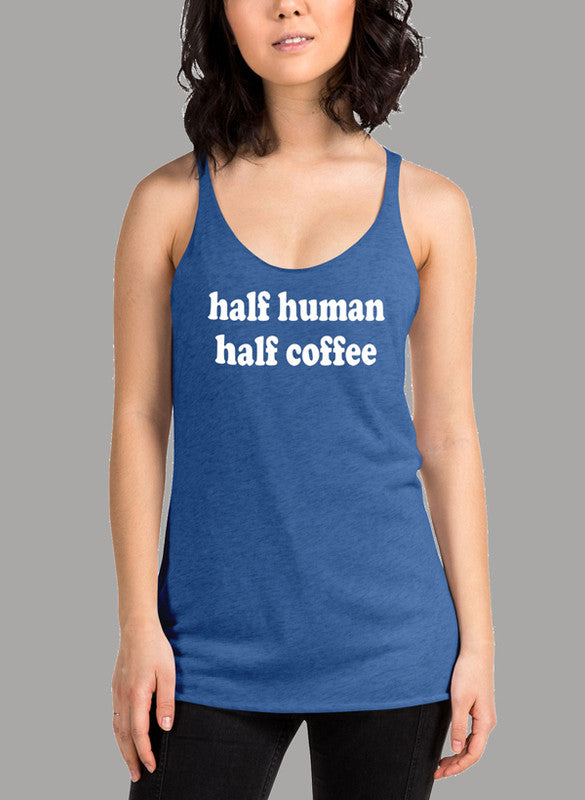 Half Human Half Coffee Women's Tank Top featuring a racer back design and curved hem, made from quick-drying Neoteric fabric.