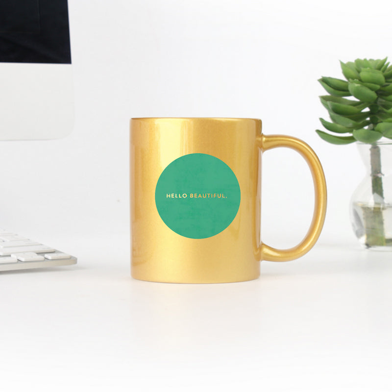 The Hello Beautiful Polka Dots Mug is available in either a one-sided or two-sided design, allowing you to choose the style that best fits your personality. The playful polka dots add a touch of whimsy, while the metallic coating provides a sophisticated shine that catches the eye. This mug is not just a drinking vessel; it’s a statement piece that enhances your table setting.