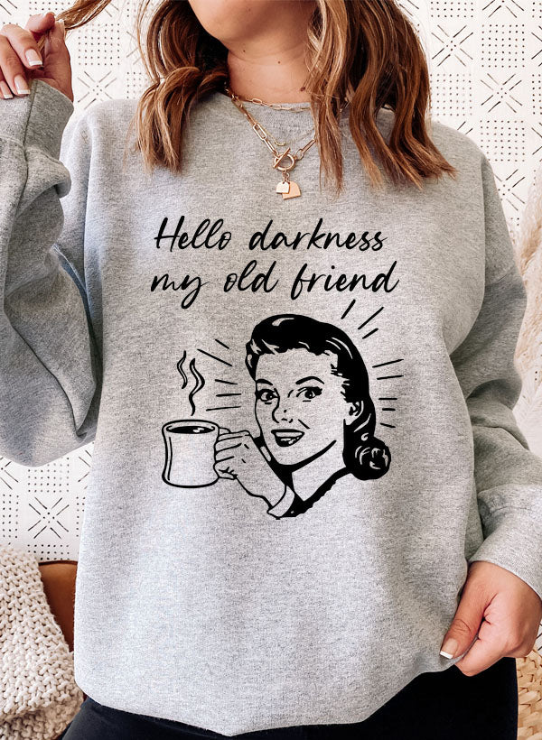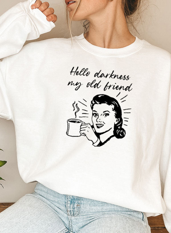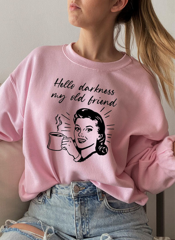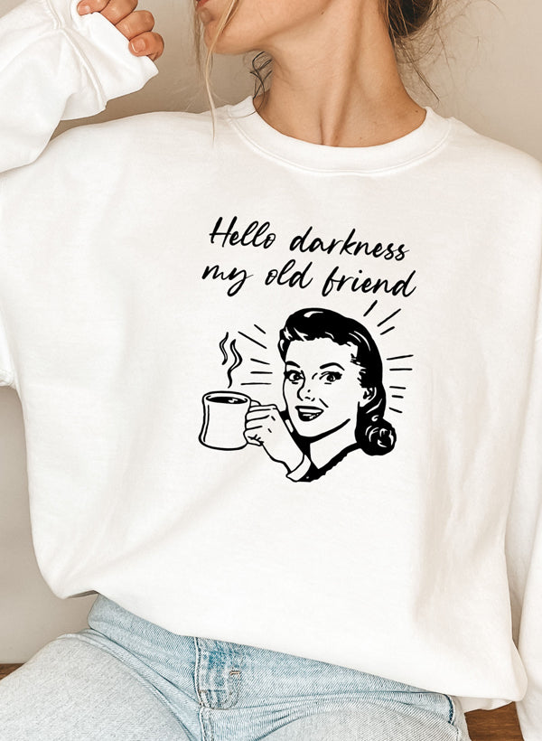 Introducing the Hello Darkness My Old Friend Coffee Sweat Shirt, a must-have for coffee lovers who appreciate comfort and style. This unique sweatshirt combines a cozy design with a playful nod to coffee culture, making it the perfect addition to your wardrobe. Whether you're lounging at home, heading to a coffee shop, or meeting friends, this sweatshirt will keep you warm and stylish.