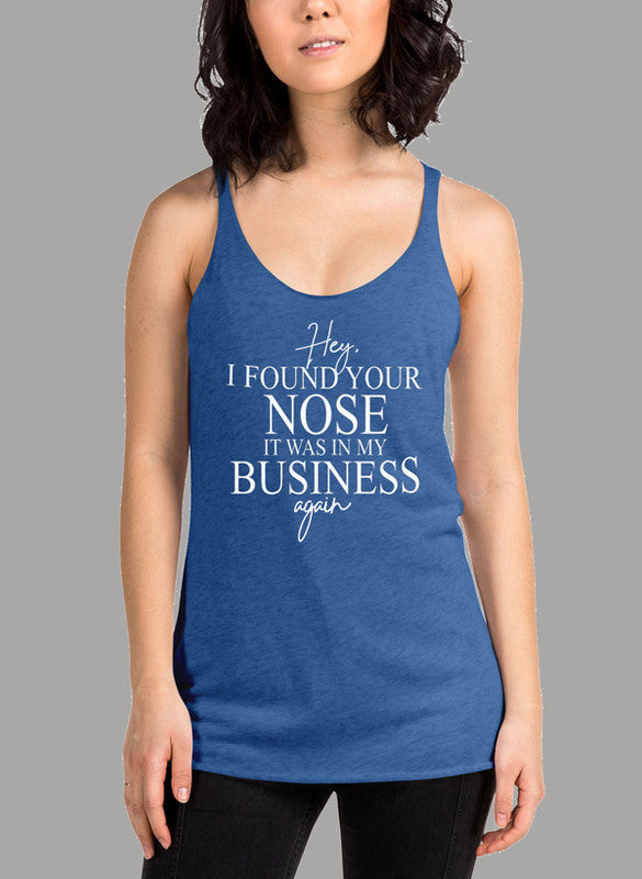 The Hey I Found Your Nose Women's Tank Top is designed with a curved back hem that adds an extra layer of comfort and style. The self-fabric binding around the neckline and armholes ensures a snug fit without irritation, allowing you to focus on your activities without distractions. Additionally, the simple tear-off label enhances comfort, making it easy to wear all day long.