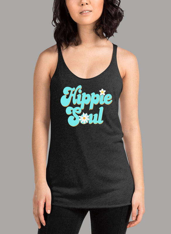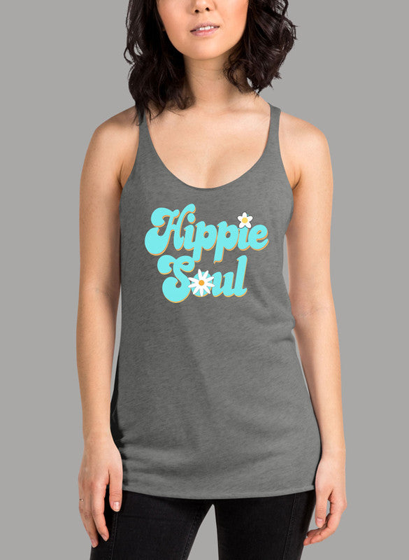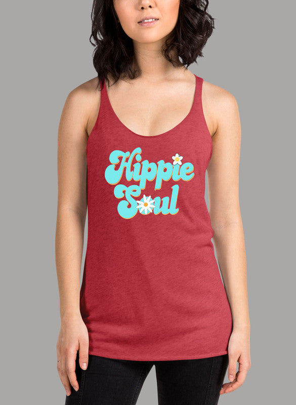 Hippie Soul Women's Tank Top featuring a racer back style and curved back hem in a vibrant color.