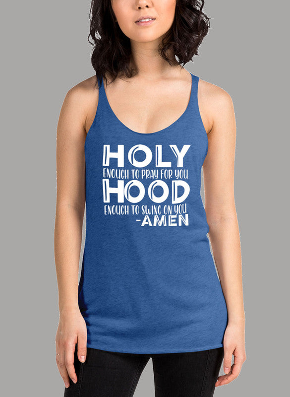 In summary, the Holy Enough To Pray For You Women's Tank Top is a versatile and stylish addition to any active woman's wardrobe. With its comfortable fit, quick-drying fabric, and UV protection, it's perfect for workouts, casual outings, or lounging at home. Plus, you can feel good about your purchase knowing it was made responsibly. Don't miss out on this essential piece for your active lifestyle!