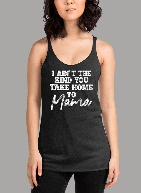 I Aint The Kind You Take Home To Mama Women's Tank Top in a stylish racer back design, showcasing its curved back hem and Neoteric™ fabric.