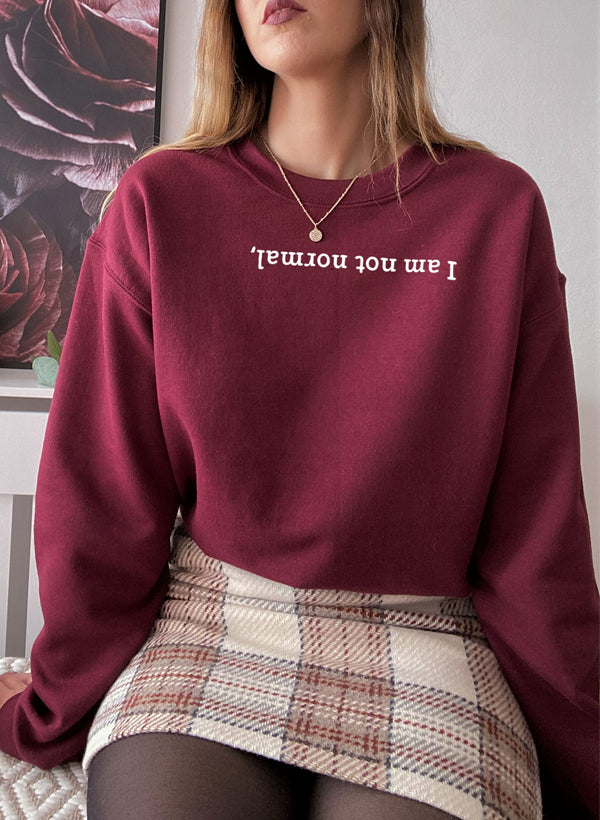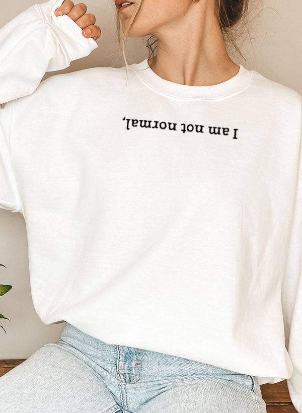 In summary, the I Am Not Normal Sweat Shirt is a must-have for anyone looking to express their individuality while enjoying comfort and warmth. With its unique design, high-quality materials, perfect fit, and ethical manufacturing, this sweatshirt is sure to become a staple in your wardrobe.