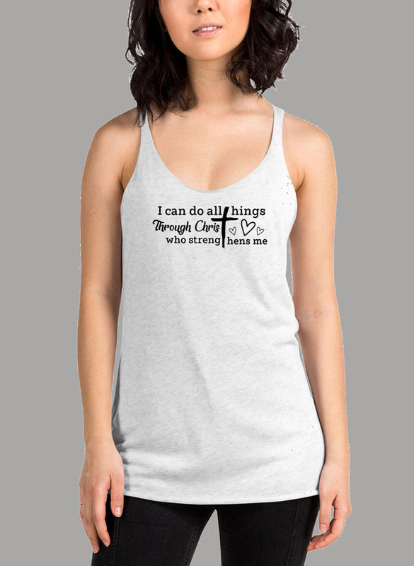 In summary, the I Can Do All Things Through Christ Black Women's Tank Top is the perfect blend of style, comfort, and performance. Whether you're working out or enjoying a casual day, this tank top will keep you looking and feeling great.