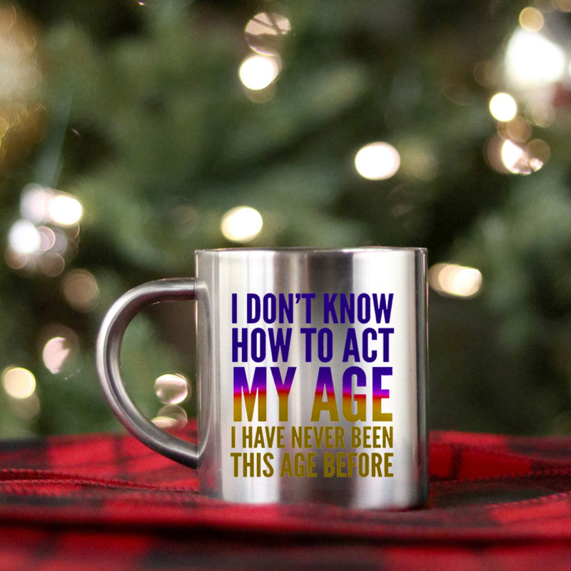 In summary, the 'I Don't Know How To Act My Age' Gold Ceramic Mug is a delightful blend of humor, style, and functionality. Its unique design, quality materials, and versatile use make it a must-have for anyone who embraces their age with a sense of fun. Add this charming mug to your collection today and enjoy your beverages in style!