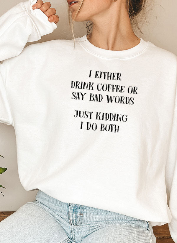 Introducing the 'I Either Drink Coffee Or I Say Bad Words Just Kidding I Do Both' Sweat, a must-have for coffee enthusiasts and those who appreciate a good laugh. This stylish sweat is not just a piece of clothing; it's a statement that reflects your personality and love for coffee. Made from a cozy cotton/poly fleece blend, this sweat is designed to keep you warm and comfortable, whether you're lounging at home or out with friends.