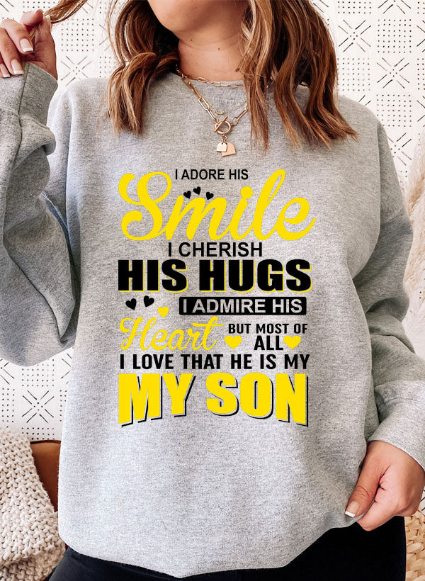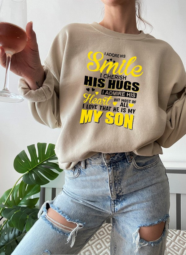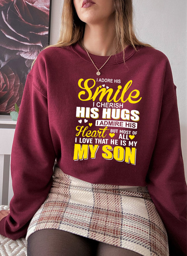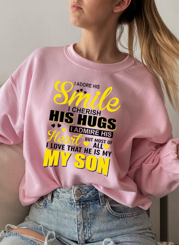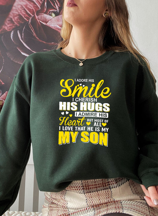 This sweatshirt features a stylish design that allows you to express your love for your son in a fashionable way. It pairs well with jeans, leggings, or shorts, making it a versatile piece that can be dressed up or down. Whether you're running errands or enjoying a family day out, this sweatshirt is sure to turn heads and spark conversations.