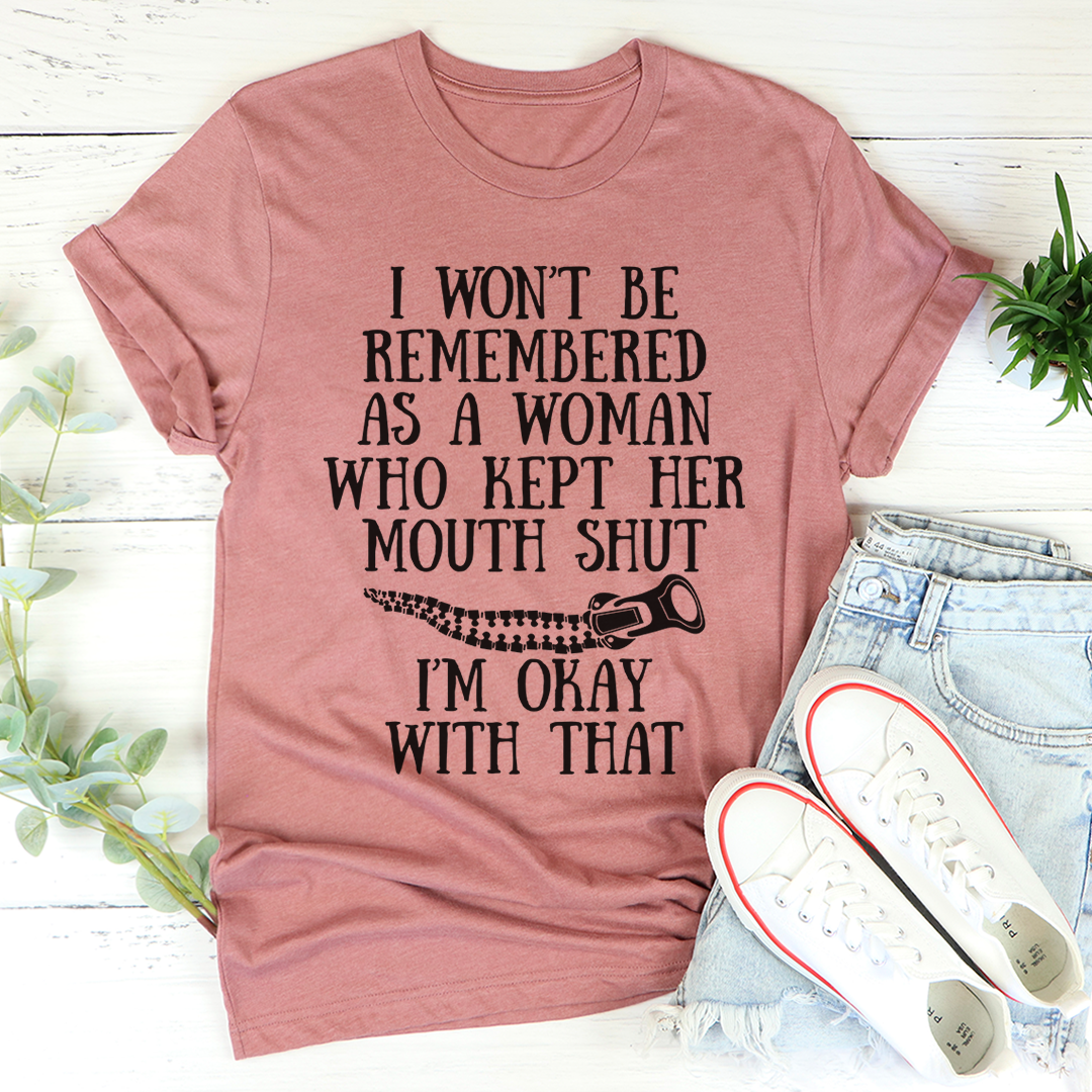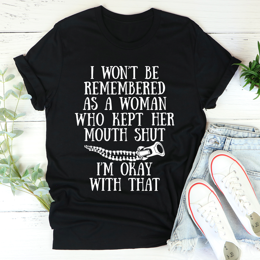 The 'I Won't Be Remembered As A Woman Who Kept Her Mouth Shut' tee is more than just a piece of clothing; it's a statement. This t-shirt is designed for those who want to express their individuality and stand out from the crowd. Made from high-quality ringspun cotton, this tee offers a smoother, softer, and stronger alternative to regular cotton, ensuring that you not only look good but feel great too.