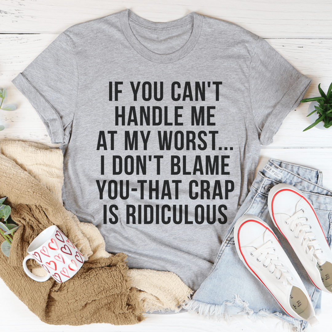 The phrase “If You Can't Handle Me At My Worst” is not just a catchy slogan; it’s a bold statement that resonates with many. This tee allows you to express your personality and attitude while remaining stylish. Pair it with jeans, shorts, or even a skirt for a chic, laid-back look that showcases your unique style.