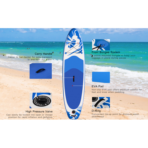 | [Excellent Paddling Performance] Measuring in 10' x 30'' x 6'', the paddle board performs well in balance and stability. Equipped with 3 bottom panel fins, the inflatable stand up paddle board is highly flexible, make it easy to steer and handle. | |||||||||||||||||||||||||