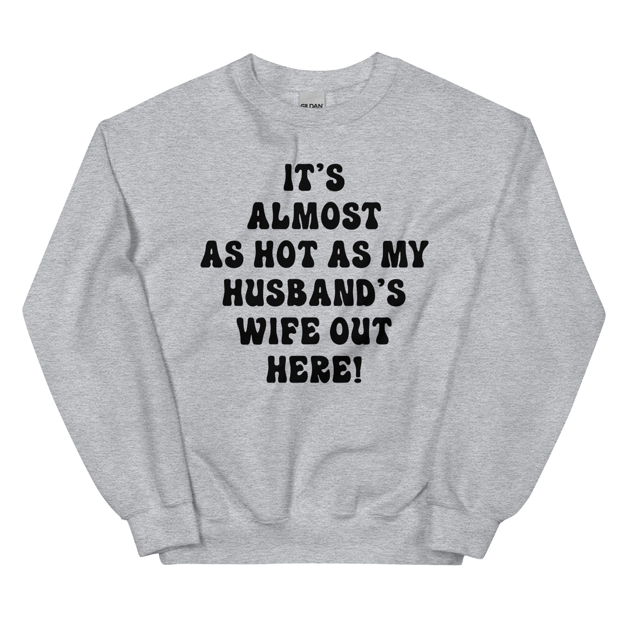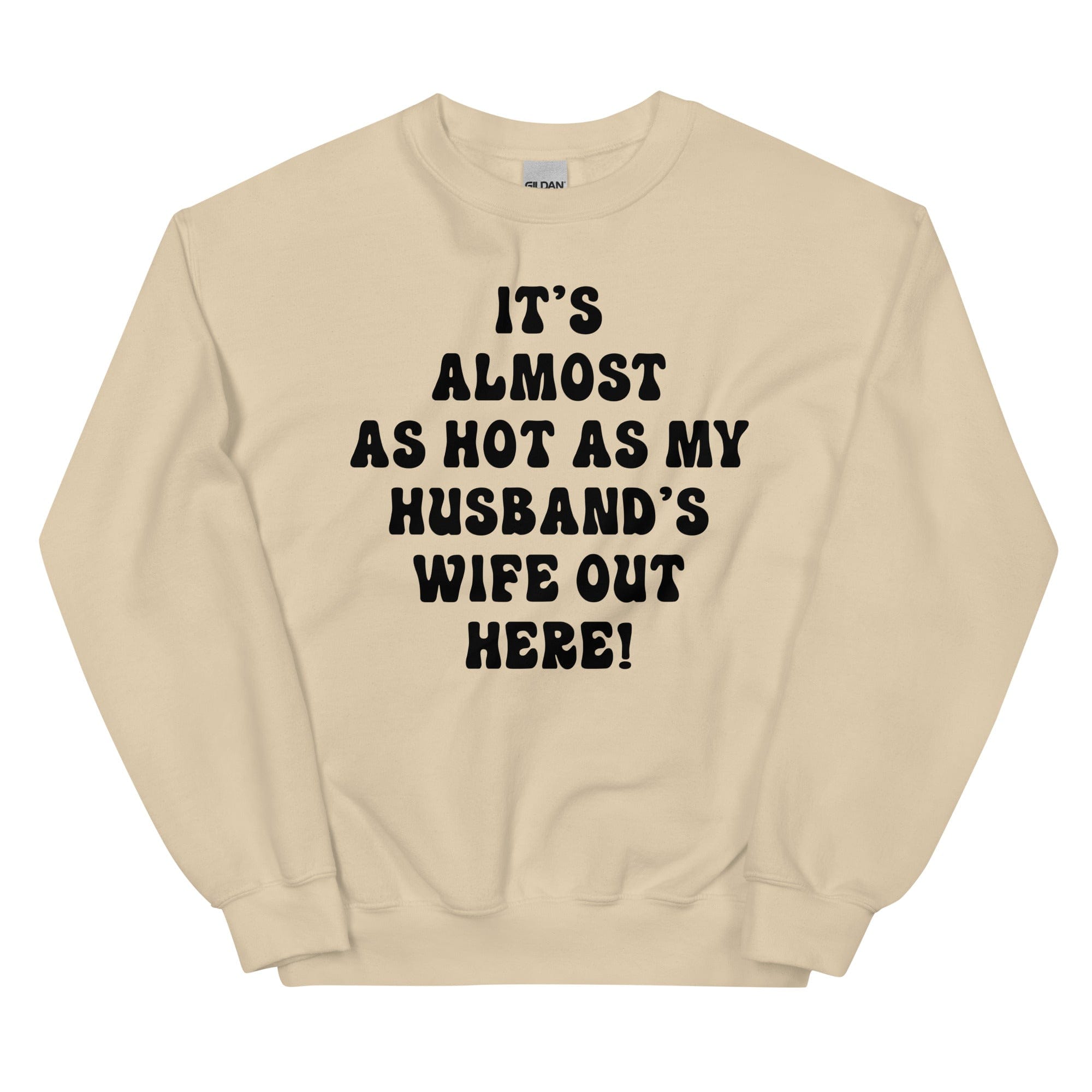 With our 'It's Almost As Hot As My Husband's Wife Out Here' sweats, you can enjoy a stylish and comfortable look while supporting ethical fashion. Shop now and express your individuality with a piece that is as unique as you are!