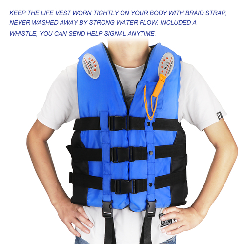 Keep the life vest worn tightly on your body with braid strap, never washed away by strong water flow. Included a whistle, you can send help signal anytime.