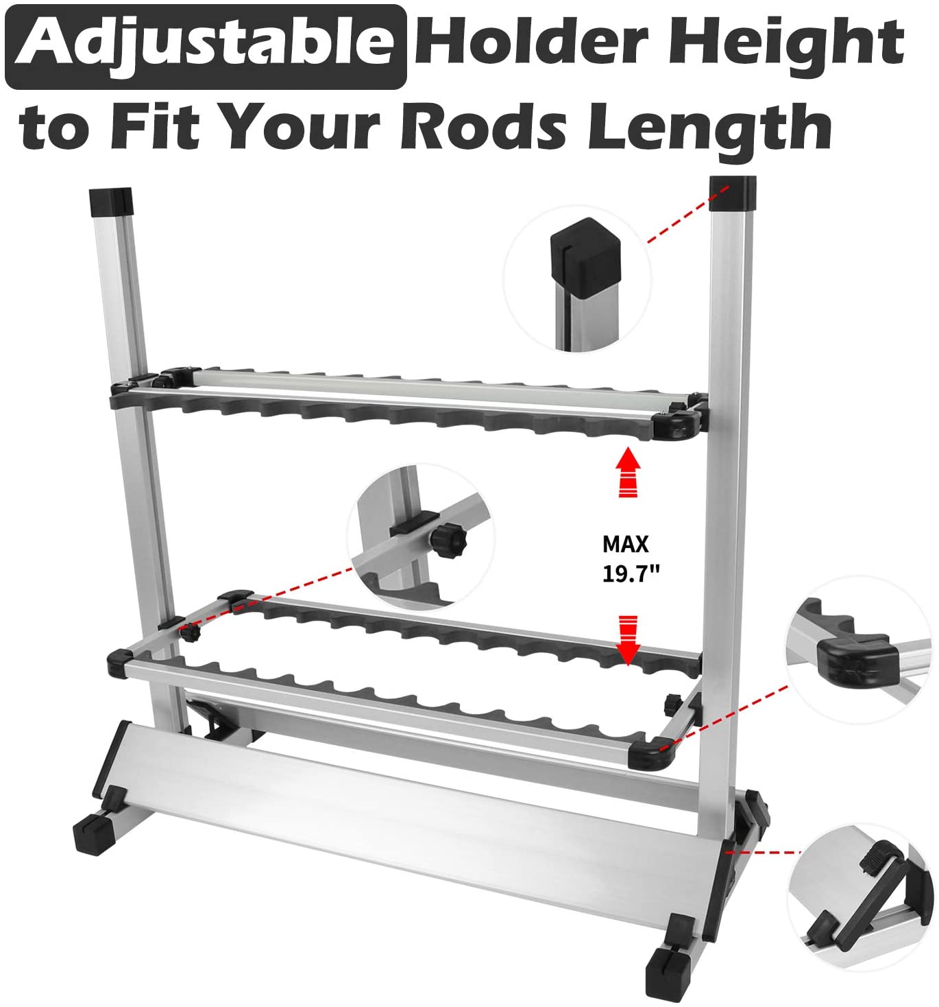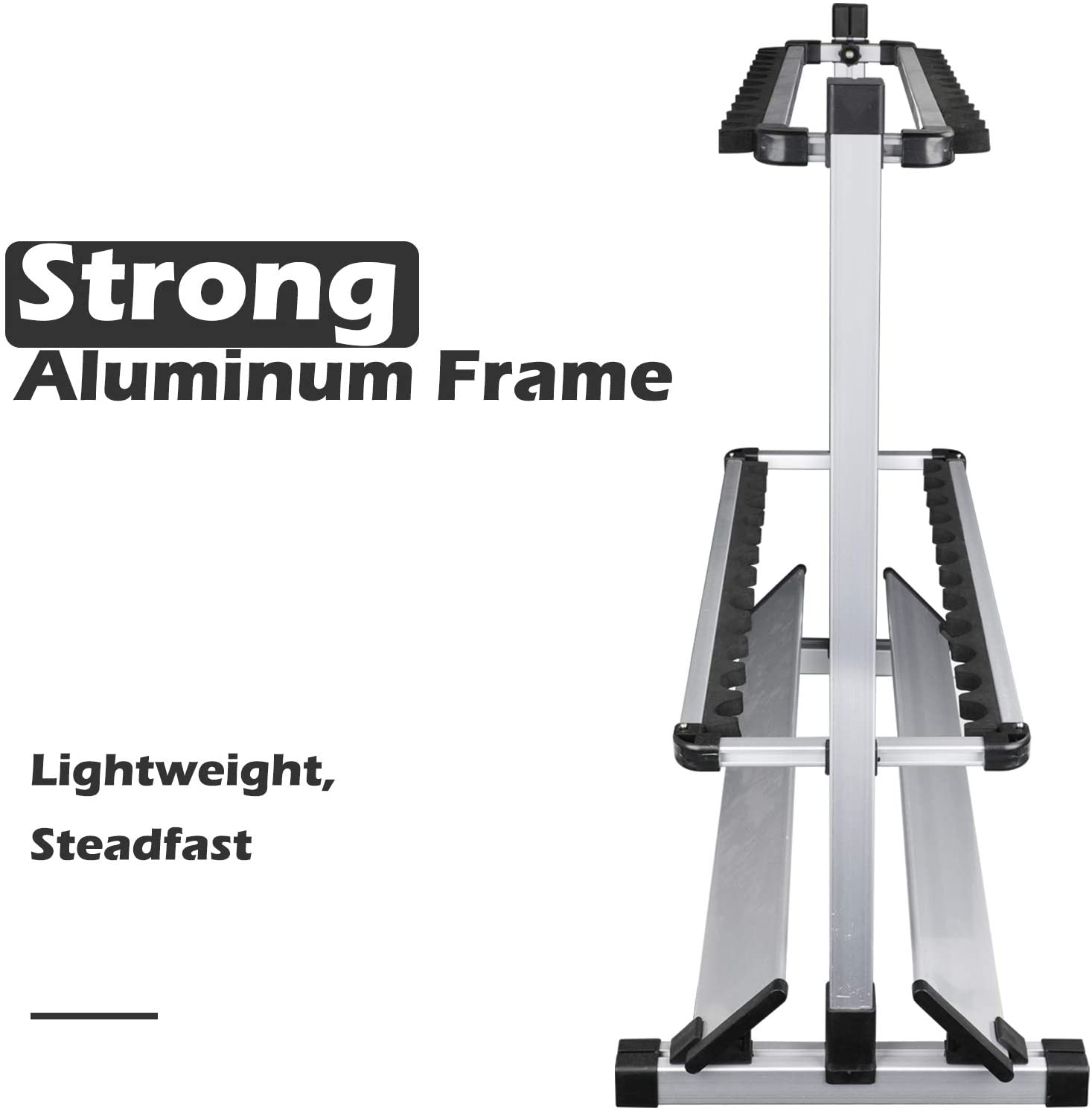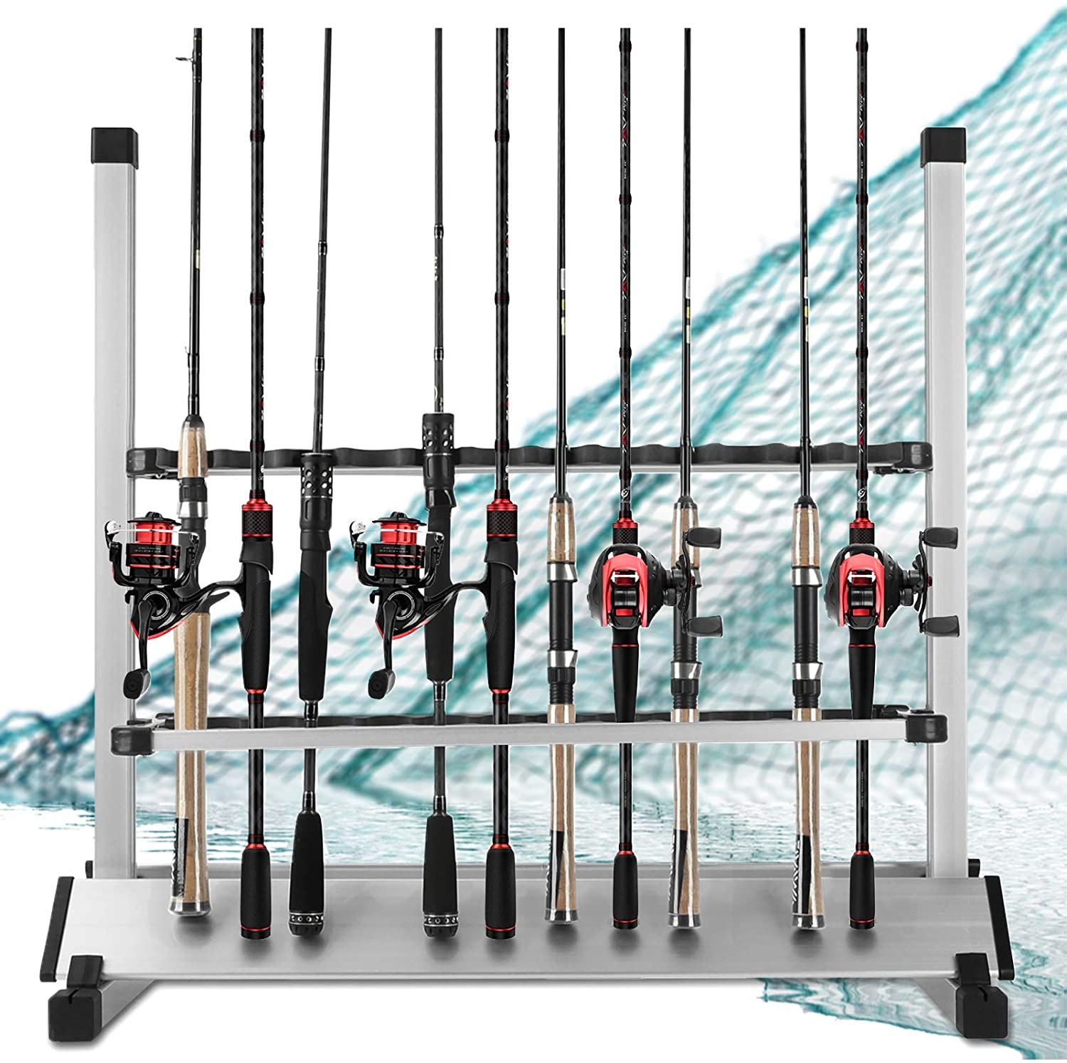 Constructed from lightweight yet durable aluminum, the LUXHMOX Fishing Rod Rack is designed for easy transport and long-lasting use. This material ensures that the rack is not only easy to move around but also sturdy enough to hold all your fishing rods securely. Whether you're heading out for a fishing trip or simply need to rearrange your garage, this rack is the perfect companion.